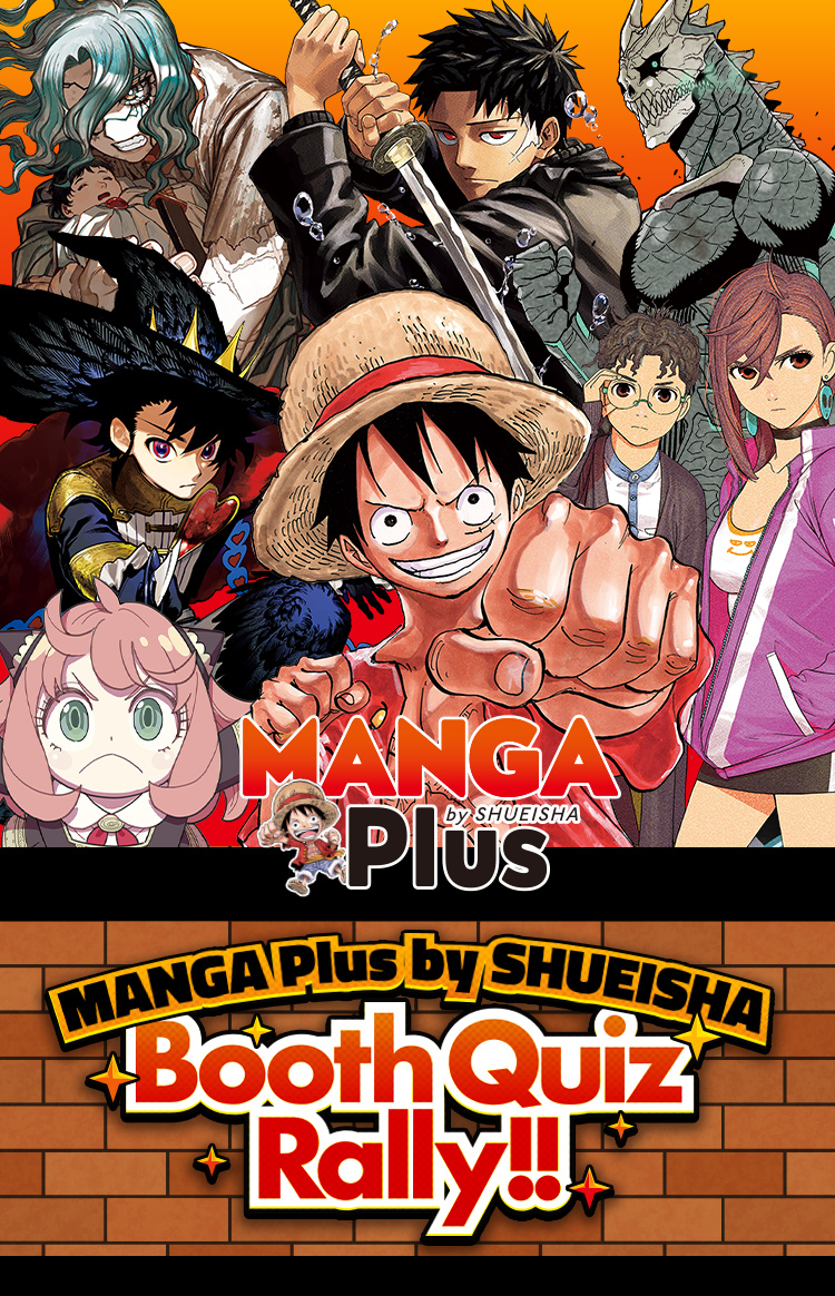 Explore each exhibit area in the MANGA Plus by SHUEISHA booth and answer the quiz questions!